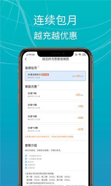 4、选择月费【套餐额度】,即每期套餐所包含的可充电度数,其中已经包含了电费和充电服务费。