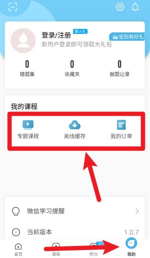 4、在我的页面中可查看专题课程、离线缓存和订单记录,方便管理学习进度和资源。