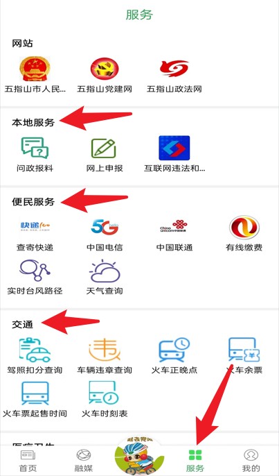 2、功能选择:可按实际需要选取相应功能模块,例如政务办理或生活服务等项目。