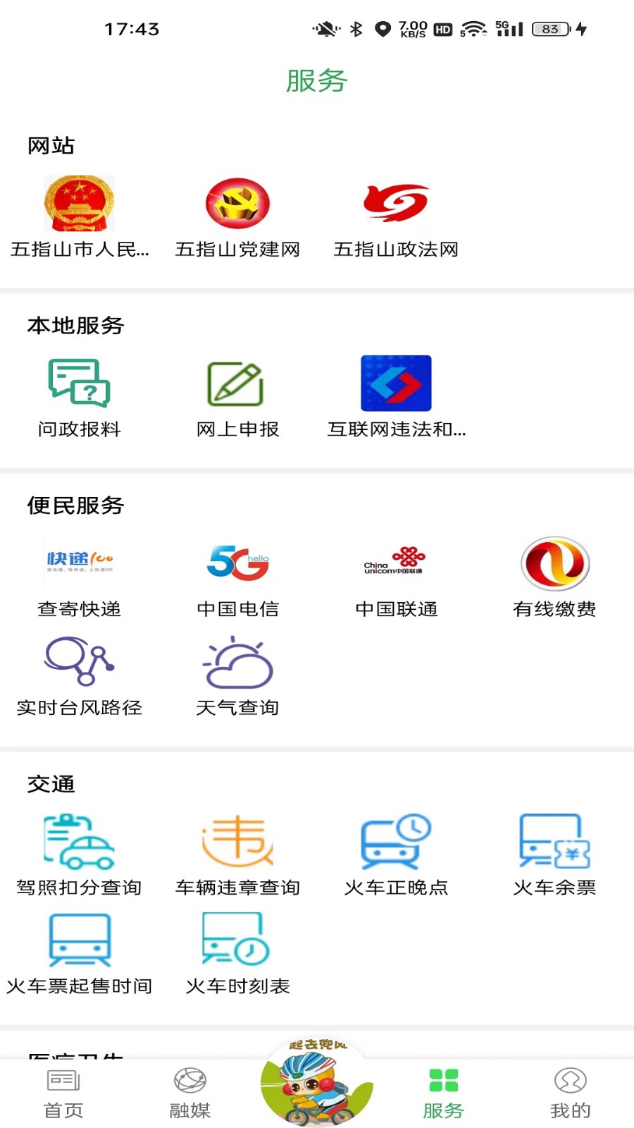 4、服务界面提供政务、便民与交通查询等功能,满足用户日常办事及出行需求。