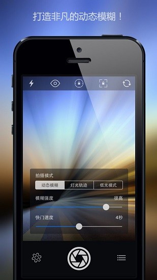 3、点击左下角拍摄按钮,可选择动态模糊、灯光轨迹、弱光模式等不同拍摄模式,适配多样拍摄场景;