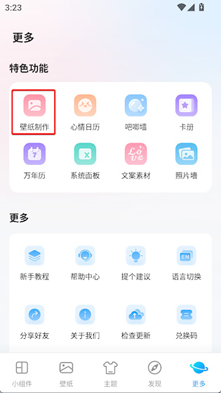 1、进入”更多“界面点击壁纸制作