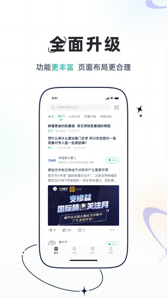 乐问健康软件是一款专注医学健康的健康资讯类软件。这款软件收录了诸多实用的医学健康知识,有许多医学专家大佬会在平台上分享常用的医学知识,对各类疾病进行简单易懂的科普,让更多的人了解相关的疾病并学会在生活中去预防这类疾病。通过平台上的搜索功能能够查找过往科普讲堂的记录。此外,用户还可联系平台上的医生进行进一步的咨询。