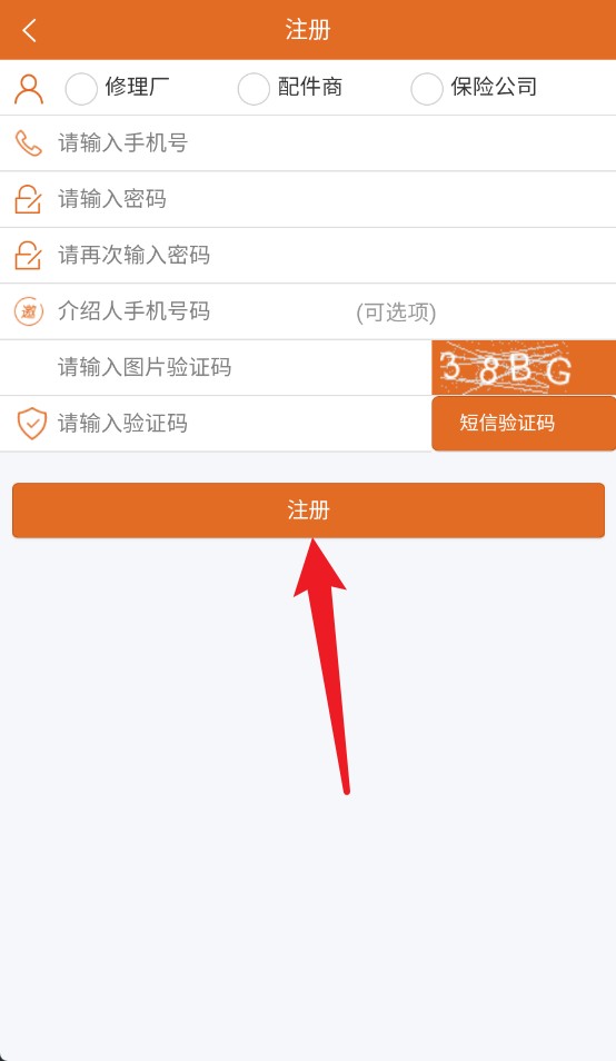 2、点击快速注册进入注册界面,填写手机号、密码、验证码等信息后点击注册。