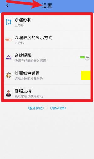 3、点击左上角齿轮图标进入设置页,可自定义沙漏形状、颜色与进度显示方式。
