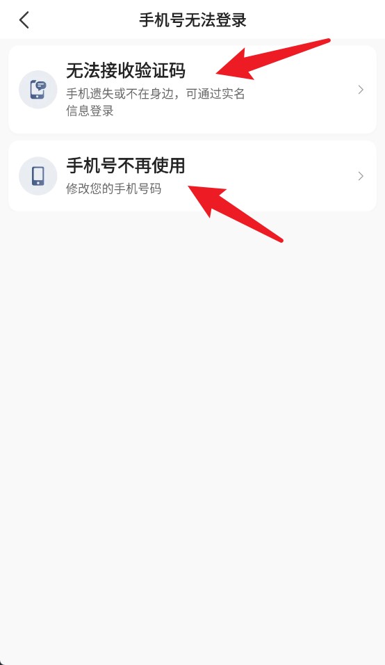 2、若手机号无法使用,可选择无法接收验证码或手机号不再使用继续处理。