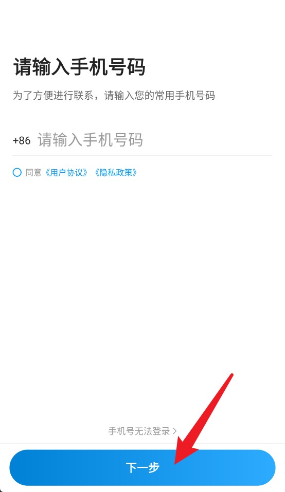 1、输入常用手机号并勾选协议后点击下一步,完成初始登录验证操作。