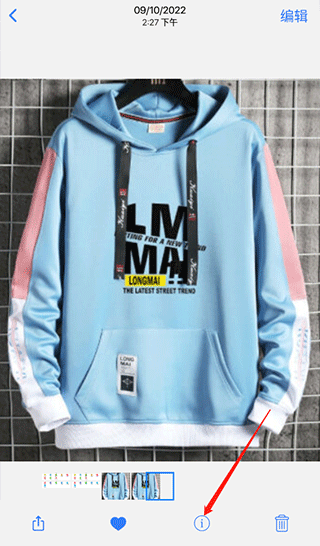 1、点击界面下方的感叹号图标,即可查看照片的基本信息详情。