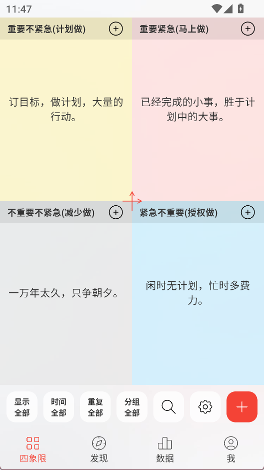 1、四象限界面可以按紧急和重要程度来分类事项