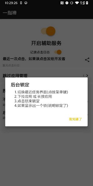 应用列表管理功能使得用户可以更好地处理应用启动广告,而后台锁定功能的建议开启,确保一指禅一直在后台运行,节省电量与流量。此外,它几乎不占用运行内存,提供了高效的广告跳过功能,让手机使用更为舒适。一指禅app的稳定性让我在使用中始终感到放心,无需root,也无需担心安全问题。