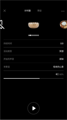 3、冥想计时器:支持自定义练习时长,配合舒缓提示音,帮助使用者专注当下,不被时间打扰。