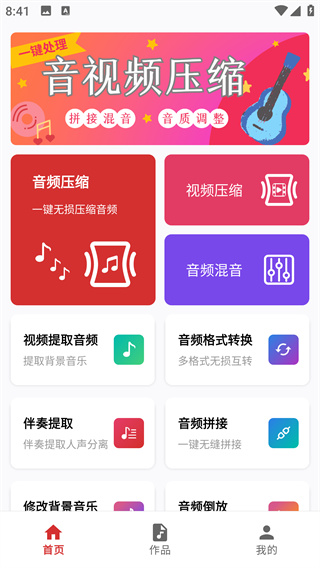 2、在首页选择音频压缩、拼接、清除等所需功能,按照提示完成相关授权流程。