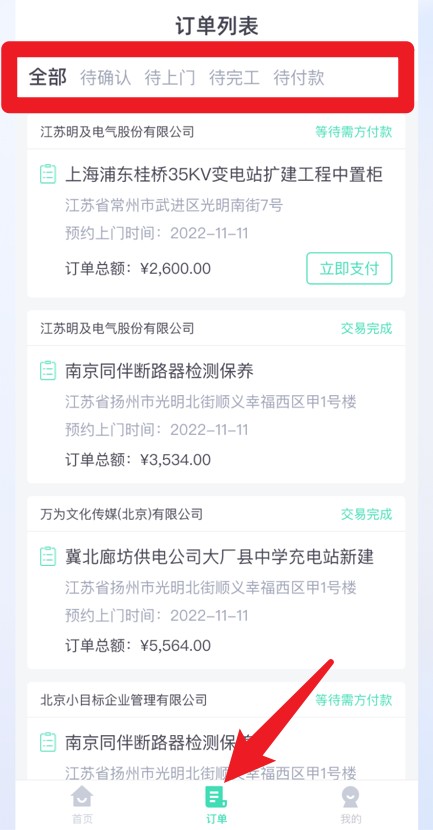 4、订单管理:进入订单页面查看所有服务订单,及时处理与电气相关的各项服务需求。