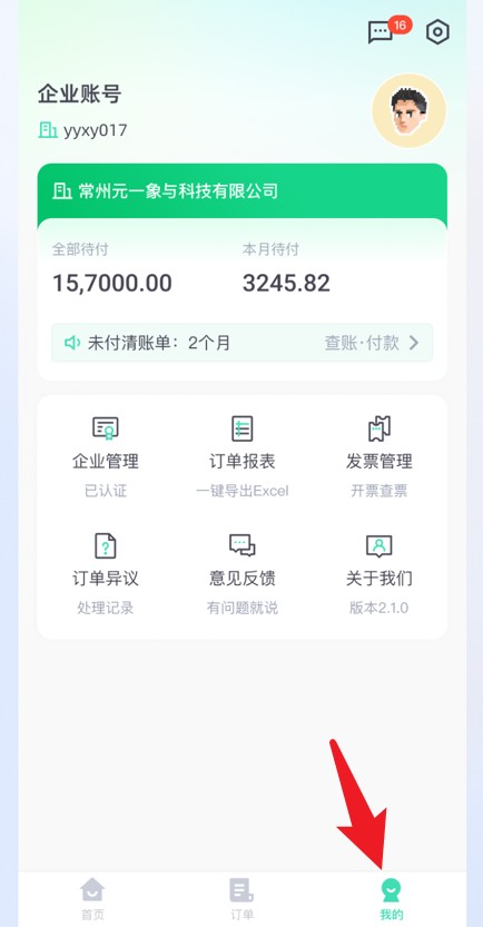 5、在我的页面可查看企业资料、订单报表、发票管理及个人信息,方便管理与操作。