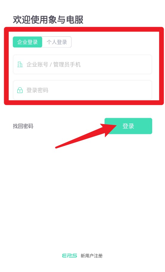 1、打开APP之后,默认进入企业登录页,输入企业账号及密码,点击登录即可进入系统。