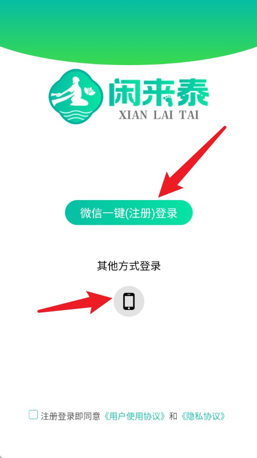 1、打开APP之后,可选择微信一键注册登录,也可点击手机图标用其他方式登录。