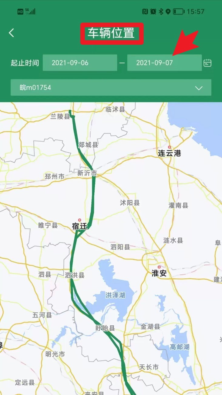 5. 前往车辆位置页面,输入车牌号与起止时间,即可查询车辆历史轨迹路线并进行地图可视化追踪。