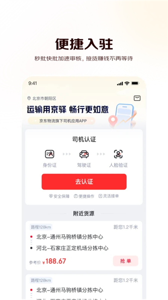 京驿货车,京东物流旗下货运交易平台司机操作端app。融合快速注册、一键接单全国360城,百亿货源,品质保障、在线议价面向直接货主,在线投标竞价、便捷结算等多种功能,面向社会运力提供车货精准匹配。旨在打造线上线下相结合,车货信息实时共享的货运市场新生态。