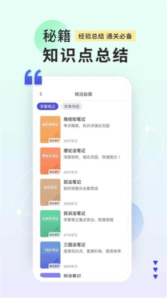2、多样学习模式:提供多种学习模式,让用户更加了解各种法律知识。