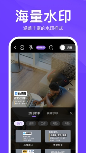 2、添加水印,支持拍摄照片、视频添加各种不同的水印,让你得到更好的利用