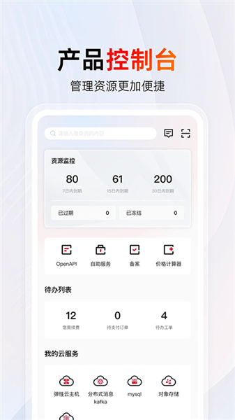 3、支持云产品的监控和管理,实时掌握云产品状态。