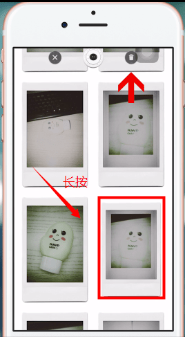 3、进入相册后找到需要删除的照片,长按该照片,界面会出现垃圾桶图标,点击即可完成删除。