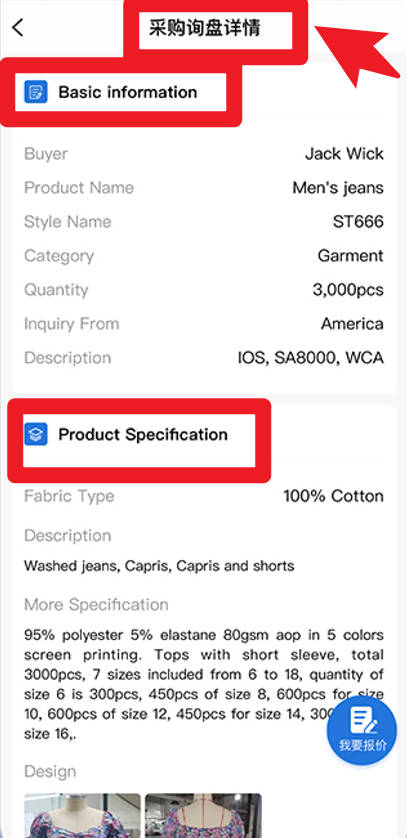 5、在采购询盘详情页面,用户能查看买家基本信息、产品规格及详细说明,便于精准对接客户需求。
