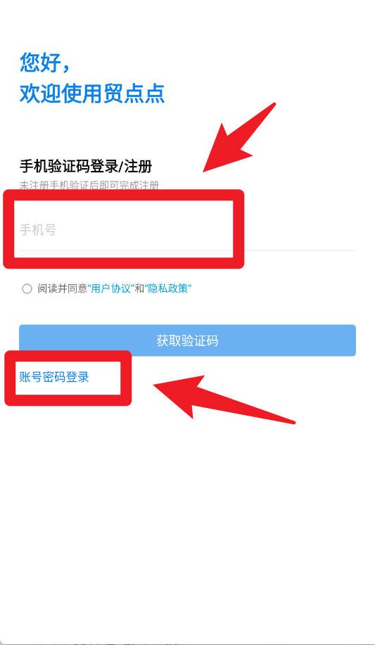 1、在登录界面,用户可通过手机号验证码登录,也可选择账号密码登录,方便快速进入系统。
