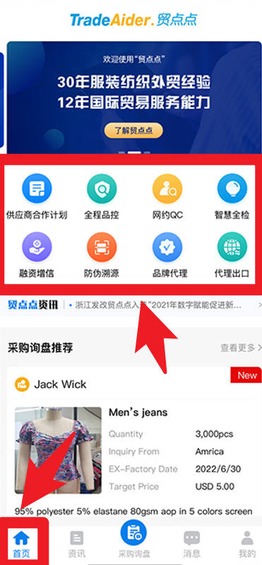 2、首页功能丰富,涵盖供应商合作计划、全程品控、融资增信、防伪溯源等模块,帮助商家高效开展业务。