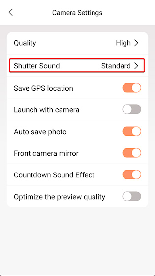 2、点击 shutter sound 进入快门声设置中