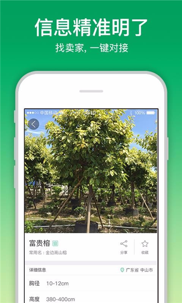 4、点击查看苗木详情,直接选择收藏苗木,一键分享信息