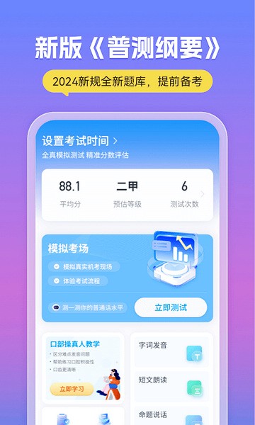 1、实时更新普通话考试变动,每日一篇美文欣赏,让你时刻关注普考动态;