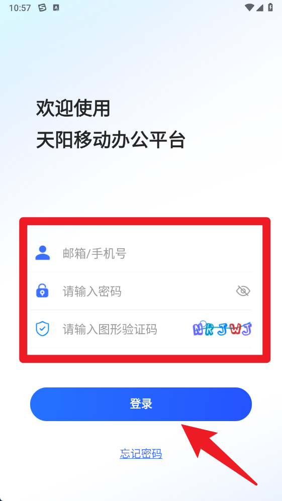 1、在登录界面输入手机号、密码及图形验证码后点击登录,即可进入移动办公平台,快速开启工作模式。