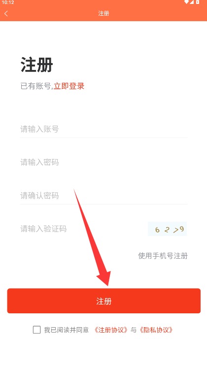 1、在注册界面,输入手机号码并设置密码,勾选同意隐私政策后点击注册创建账号。