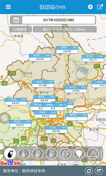 身边气象站 实时定位,检索并展示离你最近的所有自动站气象监测实况数据。