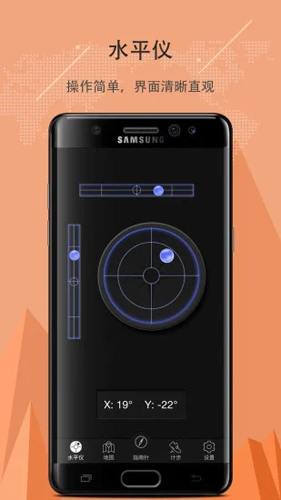 分为三个界面:指南针、水平仪、设置界面