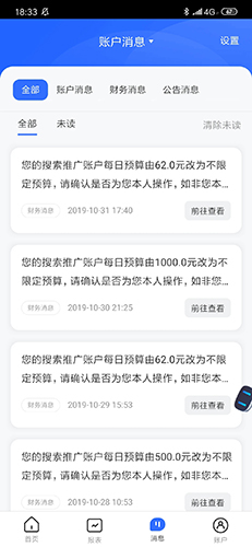百度推广app是一款由百度在线网络技术(北京)有限公司开发的推广账户管理手机软件。该软件深度整合了百度搜索推广账户中的核心功能以及服务,各位用户们可以更加方便快捷的登录搜索推广账户。 该软件与当下用户时间、应用、活跃场所等日益碎片化的消费环境相当契合,为用户们重新带来一个全新“24小时经济”的概念。
