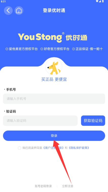 2、在登录页面输入手机号和短信验证码,勾选同意相关条款后点击登录进入首页。