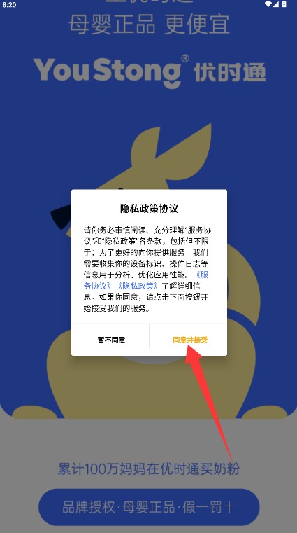 1、初次使用需阅读平台服务条款与隐私政策,确认后点击同意并接受按钮进入应用。