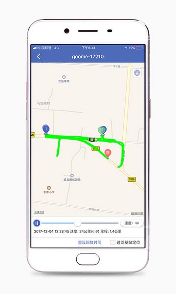 1.轨迹回放:支持回放180天内行车轨迹,回放过程中可显示车辆当时的车速、方向、停留时间等。