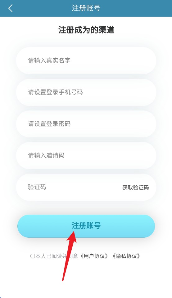 1、打开APP之后,首次使用需注册账号,填写手机号并设置密码。