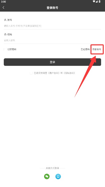 2、在登录界面,点击右下角的注册账号功能入口,跳转至账号注册操作界面。