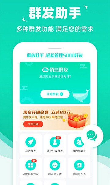 1、拥有多种群发功能,满足你的群发需求,所有功能免费使用;