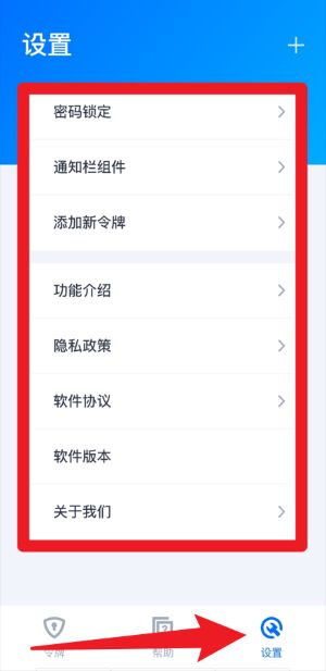 5、点击底部设置可进入功能管理页面,自定义密码锁定、通知栏、软件协议等相关设置选项。
