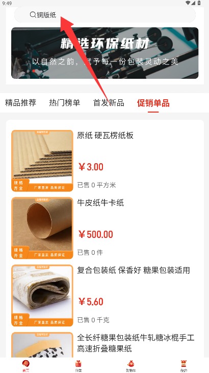 3、在首页界面顶部搜索栏输入商品名称或相关关键词,搜索需要的商品进行浏览。