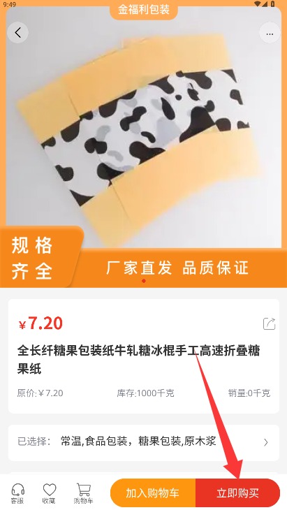 4、进入商品详细信息界面后,点击页面右下角"立即购买"按钮即可完成订购流程。
