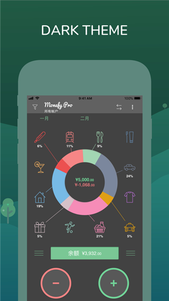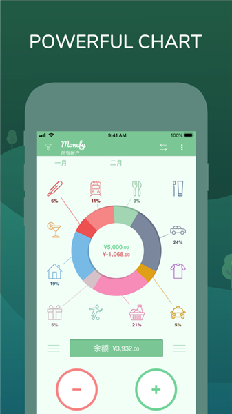 Monefy安卓版是一款专为年轻人准备的记账软件,该软件可以帮助用户们将自己的每日收支进行记录,并且还是可以支持图表,视频,文字等方式进行记录,让用户们可以一眼就了解到自己本月的收支是否平衡,以及了解到自己的本月最大的支出是哪个,从而帮助自己可以更加有效去制定下个月的财务进化,所以感兴趣的用户,快来试试吧!