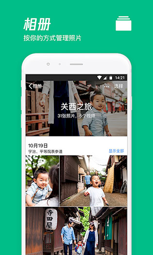 1、相册自动备份:可一键将手机中的全部照片上传至云端,支持后台持续运行,即使更换设备也能轻松找回所有影像资料,防止因存储空间不足或设备故障导致内容丢失。