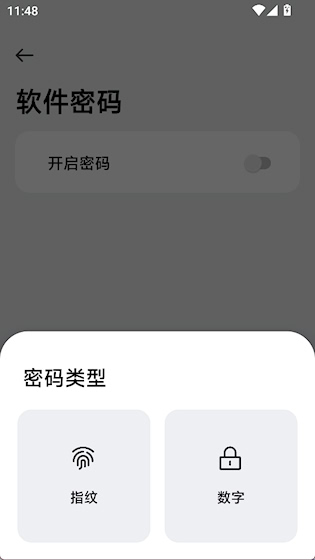 3、开启密码后,可以设置指纹或数字密码