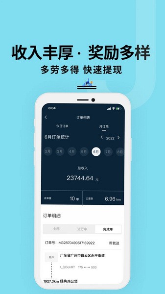 收入丰厚:实时查看账户余额,订单价格高,一单顶多单,认真跑,月入过万分分钟,单单可免手续费提现;